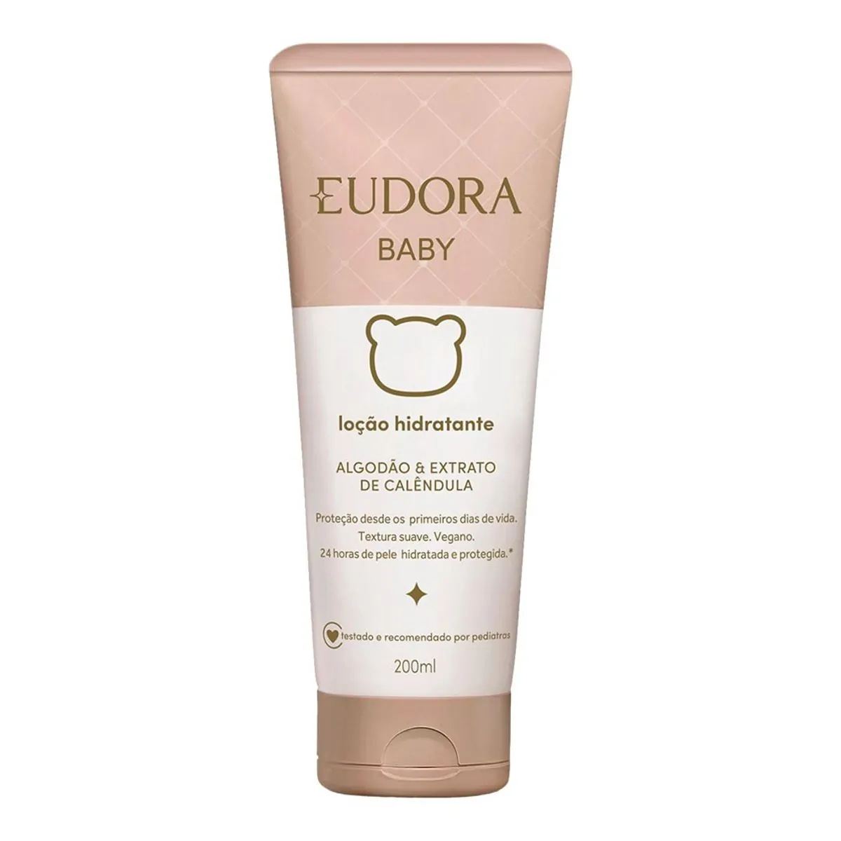 Com Extrato de Calêndula e Algodão, a Loção Hidratante Eudora Baby é ideal para crianças de até 3 anos e promove a hidratação e proteção contra o ressecamento que a pele delicada de seu bebê merece. Sua fórmula é hipoalergênica e não agride a pele do bebê! Sendo recomendada por dermatologistas e pediatras, ela se torna essencial para a rotina de cuidados diários do seu pequeno, fazendo esses momentos serem únicos e especiais. Experimente usar a Loção Hidratante após o banho do seu bebê, para intensificar a fragrância delicada da Linha Eudora Baby que conta com a sofisticação do Floral e o conforto do Musk, sendo ideal para proporcionar a hidratação delicada que a pele do seu bebê merece, deixando seu pequeno com um cheirinho delicioso o dia inteiro! Saiba mais sobre a linha Eudora Baby: A chegada de um bebê também carrega um sentimento de amor incondicional, que traz cuidado, proteção e conexão. Pensando nisso, Eudora desenvolveu momentos únicos cheios de cuidado, pureza e segurança, por meio de uma fragrância feita para te acompanhar nesses primeiros meses e eternizar os primeiros anos do seu bebê.